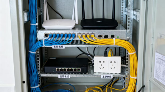 三是弱电箱安装:打造 “集中管理中心”。弱电箱是弱电线缆的集中交汇点,其安装规范直接影响系统的整体稳定性。弱电箱的位置应选择在通风干燥、远离强电箱(距离不小于 0.5 米)的区域,避免强电磁场干扰;箱内需安装电源插座,为路由器、交换机、光猫等设备供电;同时,箱内线缆需整理整齐,用扎带分区固定(如网线、电视线、安防线缆分开排列),避免线缆缠绕导致散热不良,影响设备运行。