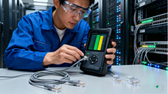 需要特别注意的是,测试需覆盖 “所有水晶头”,包括工作区插座端、配线架端、设备端(如交换机端口),不能因 “部分链路合格” 而省略测试。某酒店项目曾因遗漏 “机房配线架端” 的水晶头测试,导致后期客房网络频繁断连,最终发现配线架端有 15 个水晶头线序错误,需停机整改,影响了酒店正常运营。
