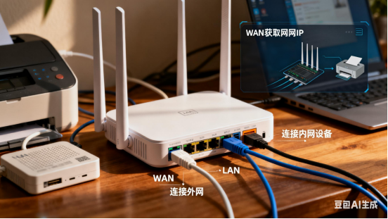 - 小型办公网络:路由器 WAN 口接公司外网,LAN 口接交换机,交换机再连接员工电脑、打印机,实现多设备同时上网。