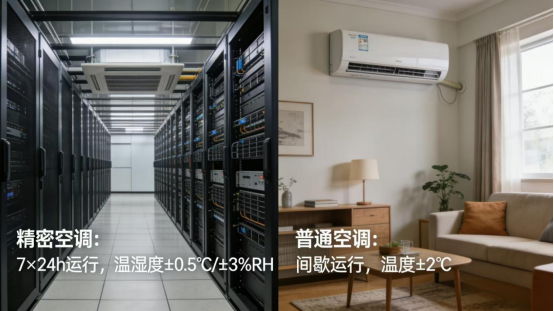 机房工程里,精密空调和普通空调的核心区别是什么?机房温湿度的标准范围是多少?