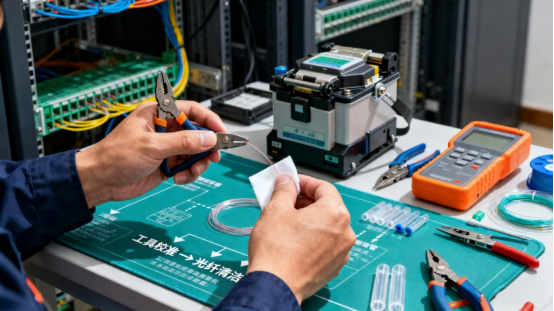 光纤熔接的核心要求是“纤芯对准零偏差、熔融结合无气泡、接头保护抗损耗”,整个流程需在防尘、干燥的环境下进行,哪怕微小的灰尘或光纤切面瑕疵,都可能导致损耗飙升。具体流程可分为六个关键环节,环环相扣: